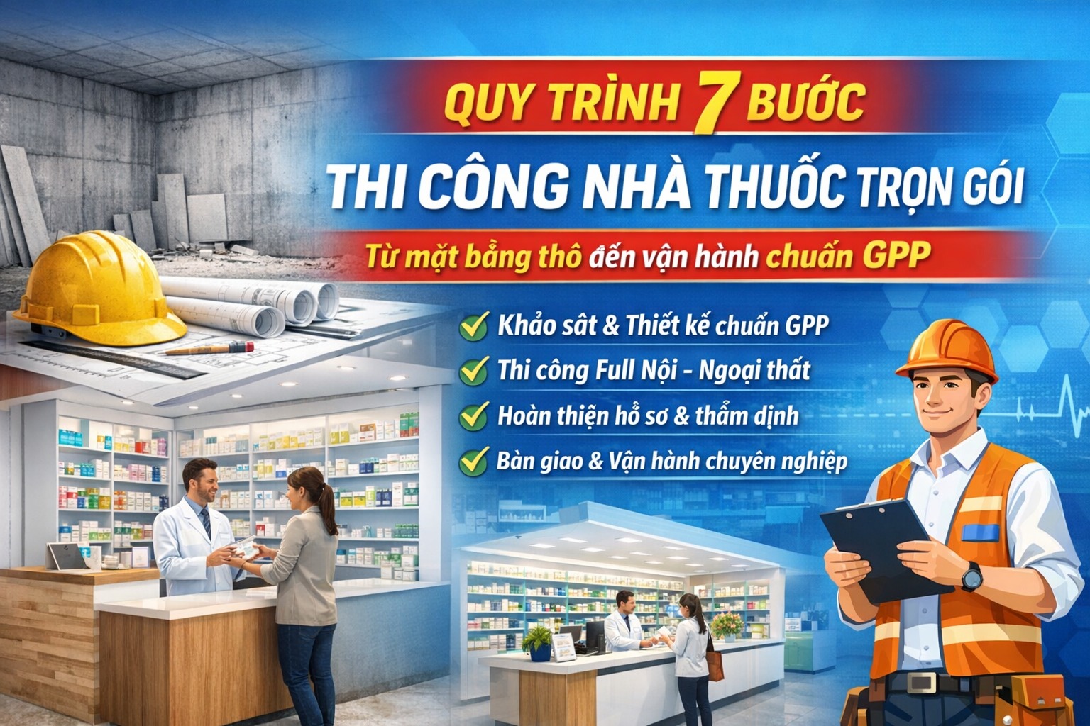 Quy trình 7 bước thi công nhà thuốc trọn gói từ mặt bằng thô đến vận hành