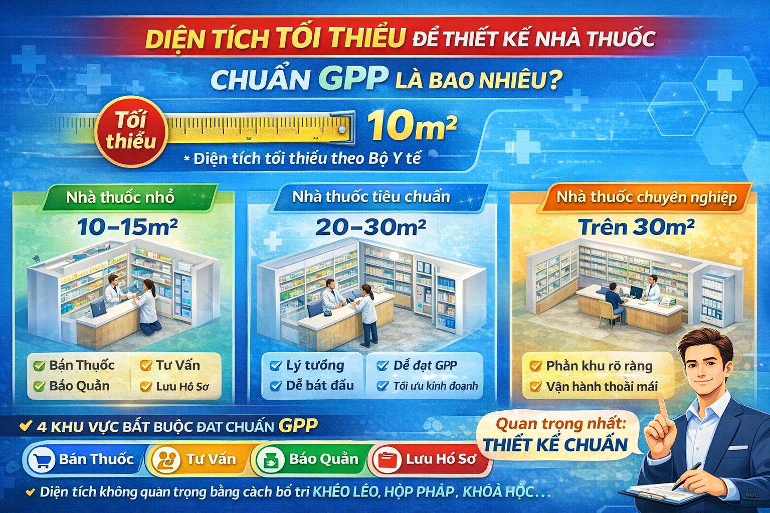 Diện tích tối thiểu để thiết kế nhà thuốc chuẩn GPP là bao nhiêu?